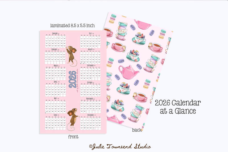 2026 Laminated Calendar at a Glance - MOUSEY TEA PARTY Calendar - Smiles All Year Long - Perfect for your desk or office - Great gift idea