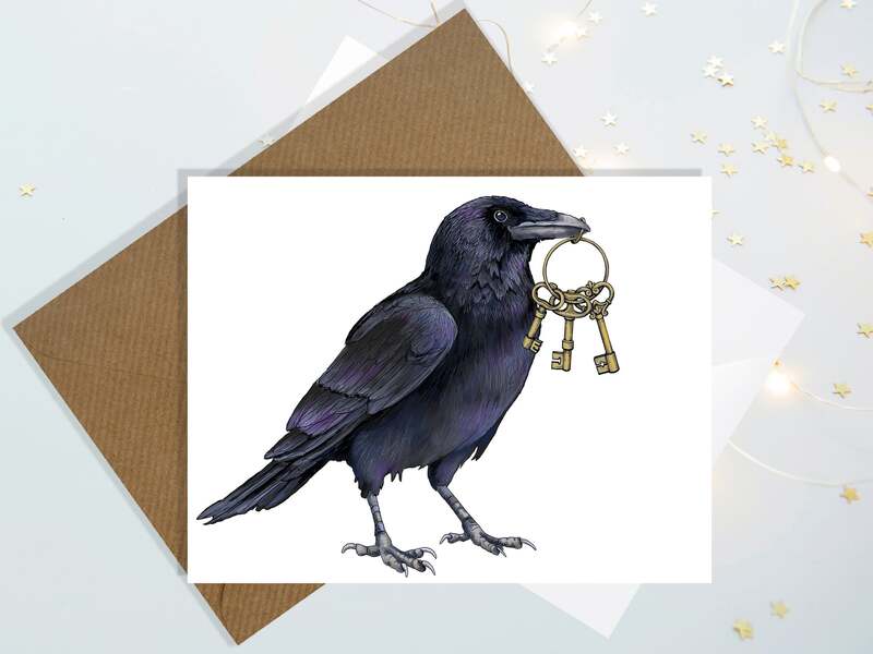 Note Card Set - Crow with Keys - Pack of 10 greeting cards with envelopes