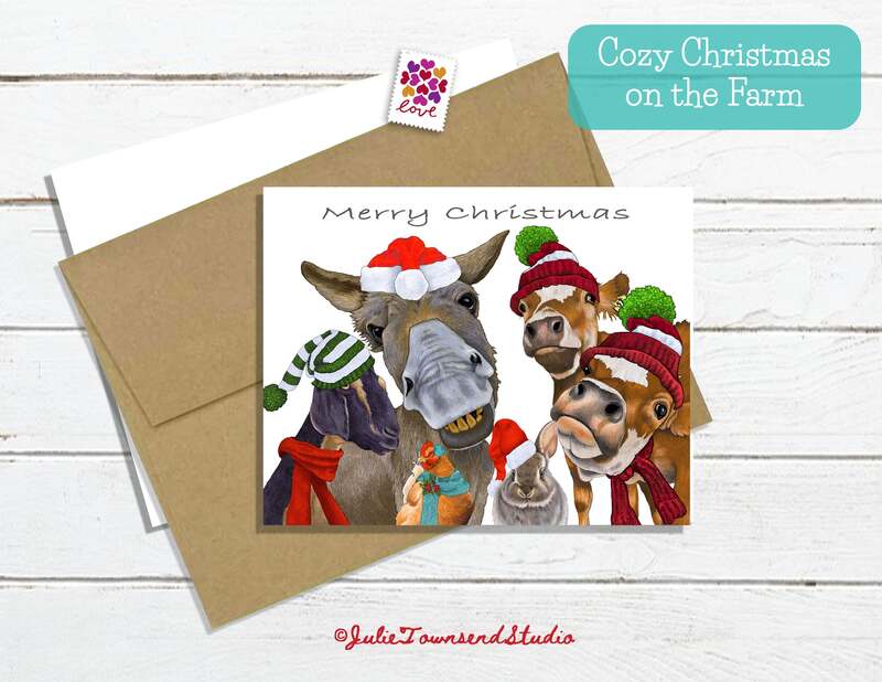 Note Card Set - Cozy Christmas on the Farm - Set of 10 small notecards