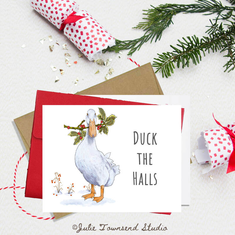Note Card Set -DUCK THE HALLS - Set of 10 A2 notecards