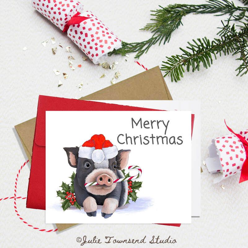 Note Card Set - LITTLE PIGGY CHRISTMAS - Set of 10 A2 notecards