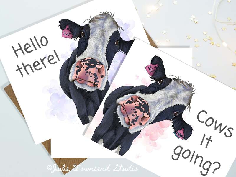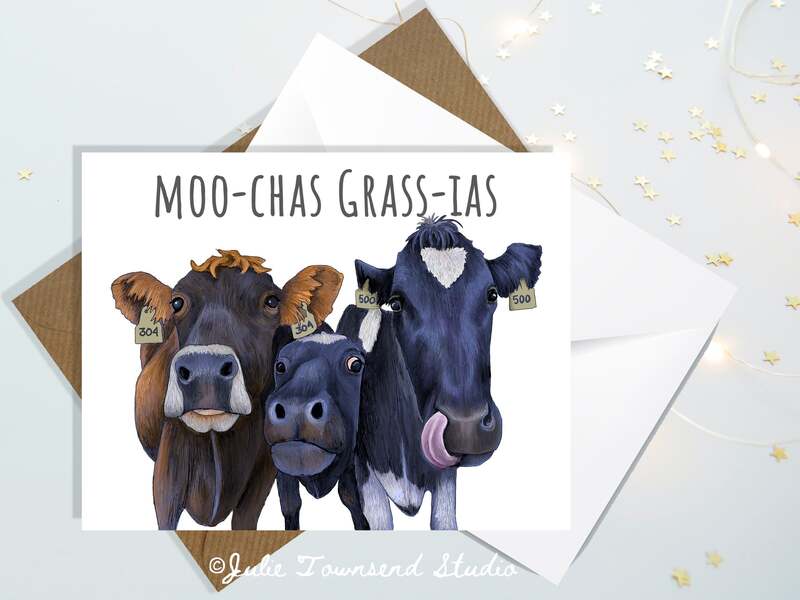 Note Card Set - Pretty Girls Thank You Cards - Set of 10 cow cards
