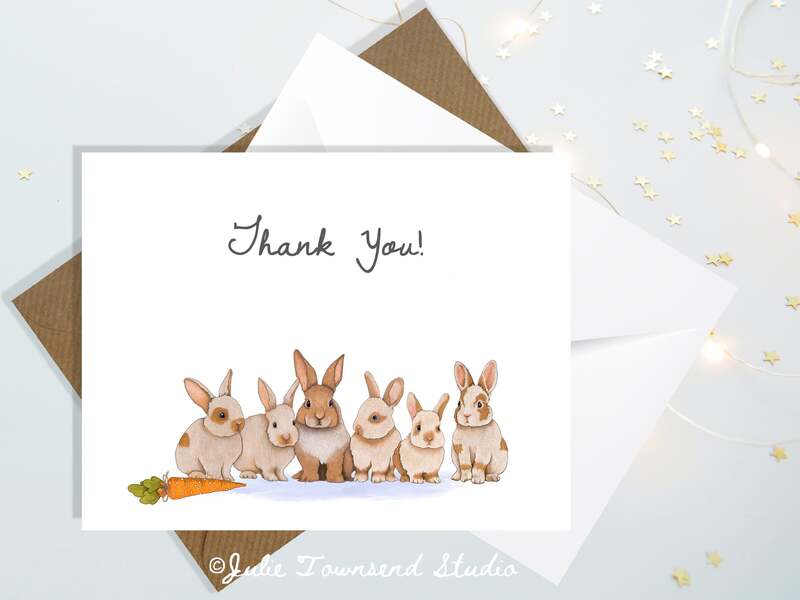 Note Card Set - Sweet Bunny Thank You Cards - Pack of 10 cards