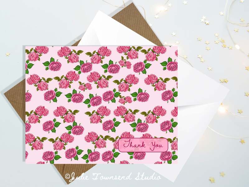 Note Card Set - Peonies and Roses Thank You Cards - Set of 10 cards