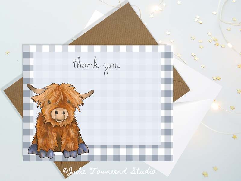Note Card Set - PLUSHY HIGHLAND COW THANK YOU Notecards - Set of 10 cards