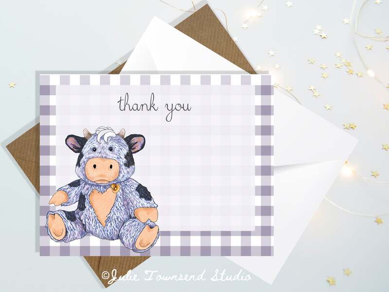 Note Card Set - PLUSHY COW THANK YOU Notecards - Set of 10 cards