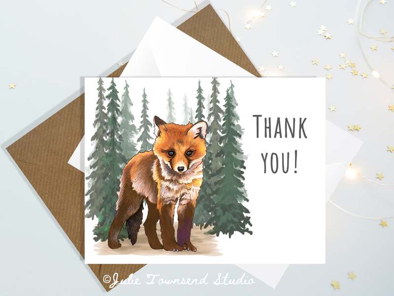 Note Card Set -WOODLAND BABY FOX THANK YOU CARDS - set of 10 cards