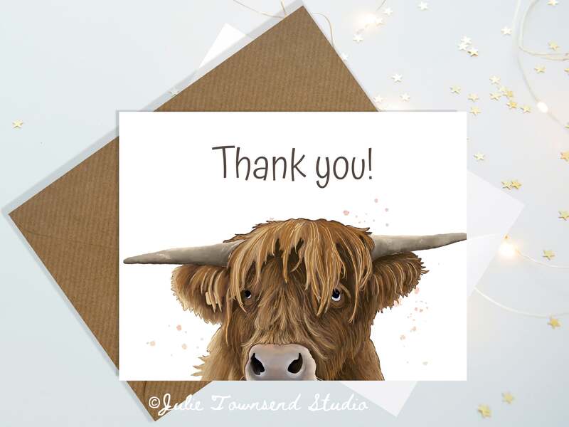 Note Card Set -Harry the Highland Cow Thank You Cards - set of 10 cards