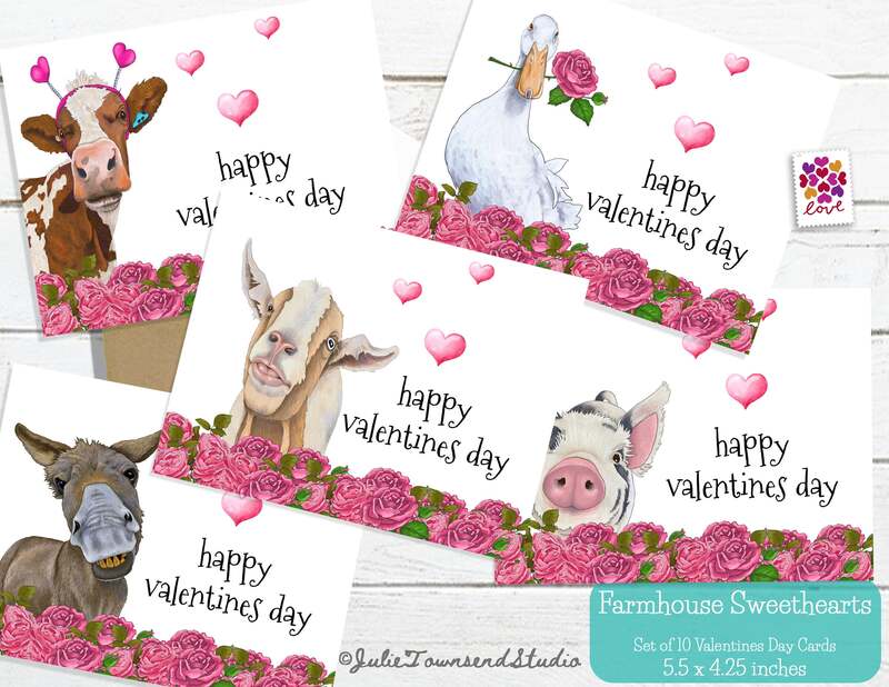 Valentine Note Card Set - FARMHOUSE SWEETHEARTS Notecards - Set of 10 cards