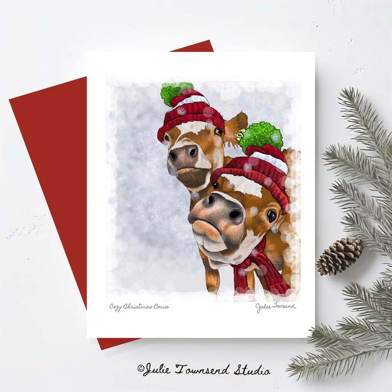 Note Card Set - Christmas Cows on the Farm Thank You Card Sets - Set of 10 Cute Christmas Cows
