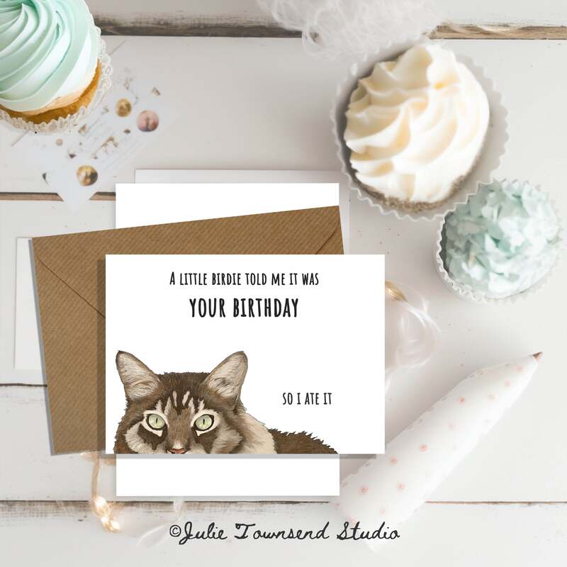 Birthday Card - A Little Birdie Told Me - Funny Cat Birthday Card