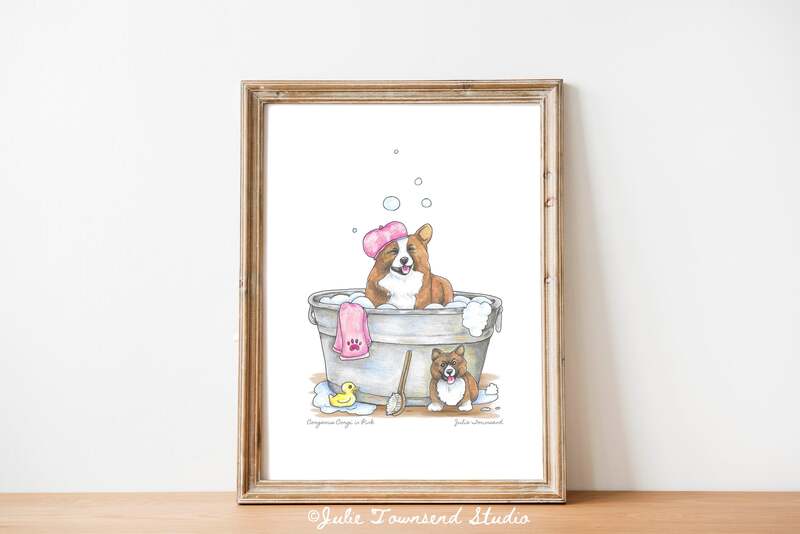 Art Print - Corgeous Corgi in Pink - Part of my Wash Tub Series