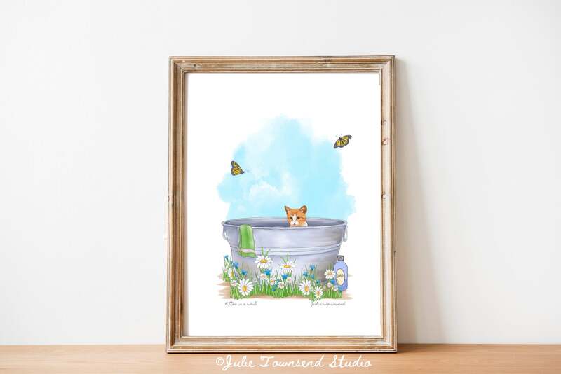 Art Print - Kitten in the Tub - Part of my Wash Tub Series