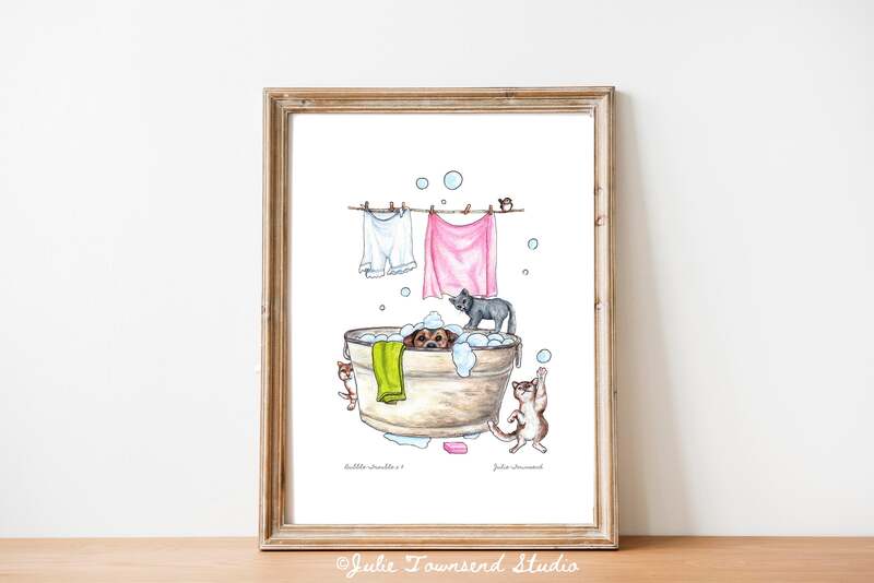 Art Print - Bubbles and Bushy Tails - Part of my Wash Tub Series