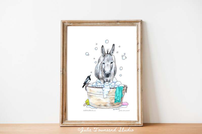 Art Print - Bubble Bath Burro - Part of my Wash Tub Series