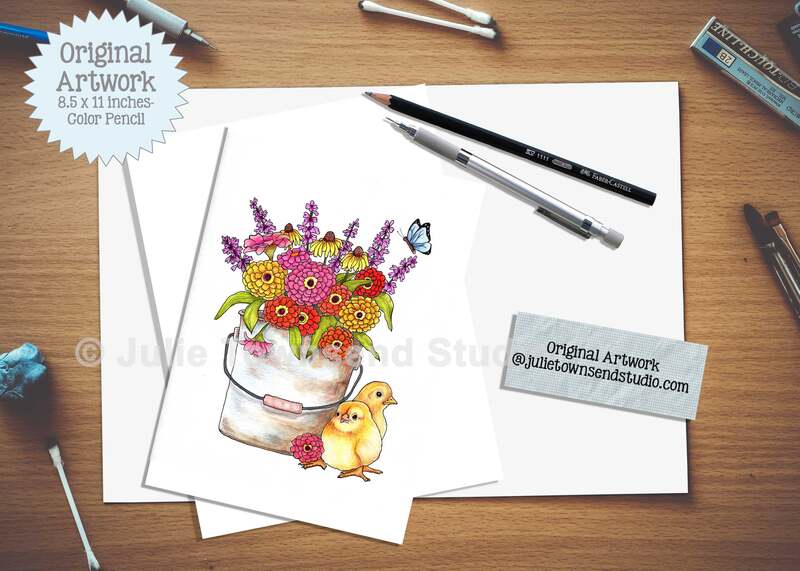 ORIGINAL - "Zinnias in my Bucket"