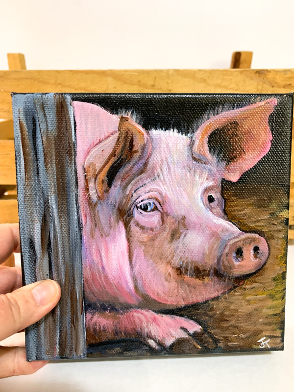 Pig in the Barn - Original Acrylic Painting on a Canvas