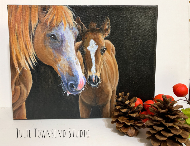 The Mare and Her Foal - Original Acrylic Painting on Canvas