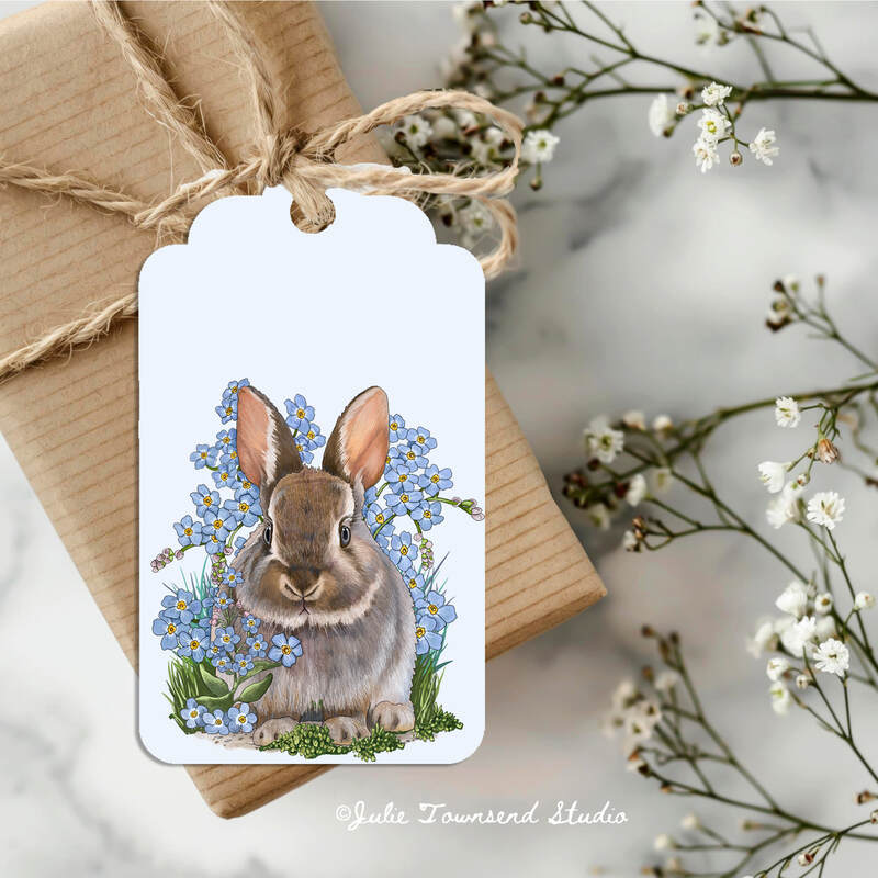 Gift Tags - Forget-me-not Bunny - set of 8 handmade gift tags