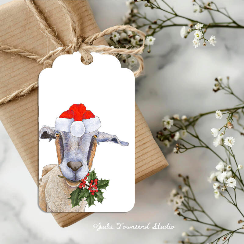 Gift Tags -Christmas Goat Tags - set of 8 handmade gift tags