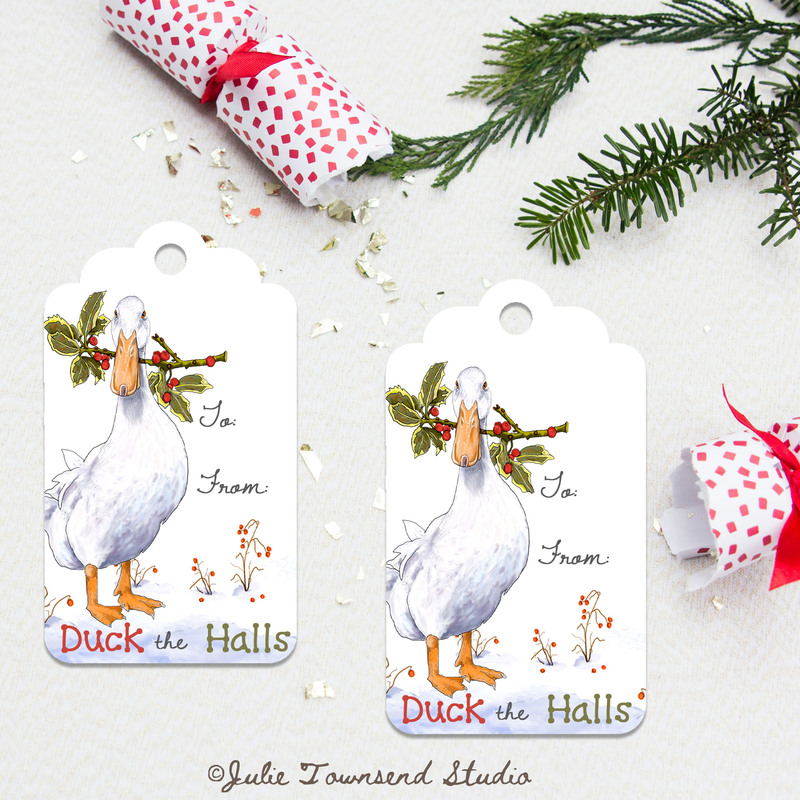 Gift Tags -Duck the Halls Christmas Tags - set of 8 handmade gift tags
