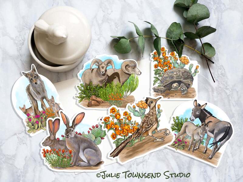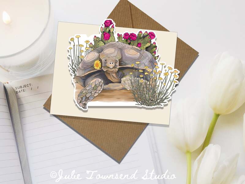 207- DESERT TORTOISE & GLOBE MALLOW - MOJAVE DESERT WILDLIFE SERIES