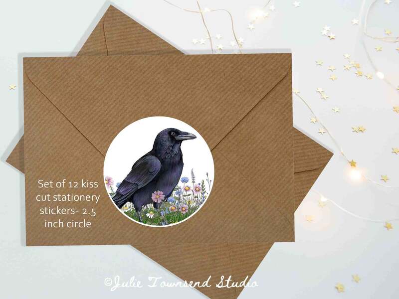 Crow in the Wildflowers Stationery Sticker Set of 12