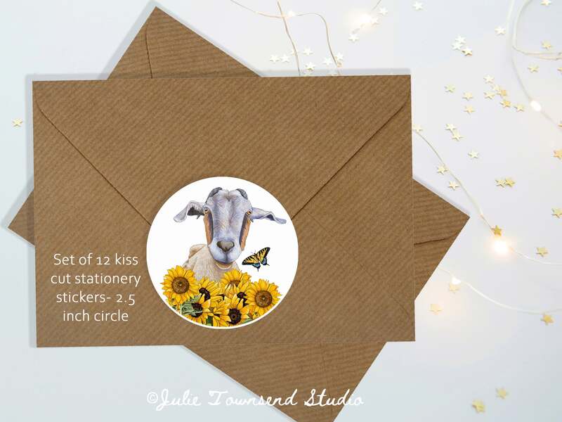Nibbles the Goat in Sunflowers Stationery Sticker Set of 12